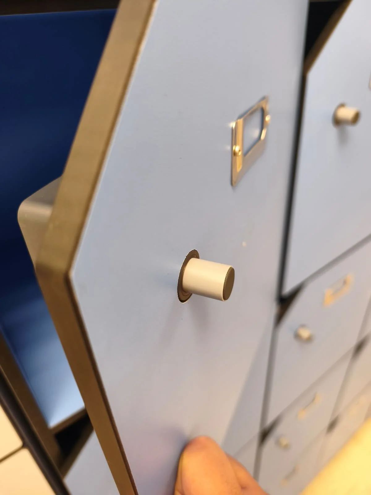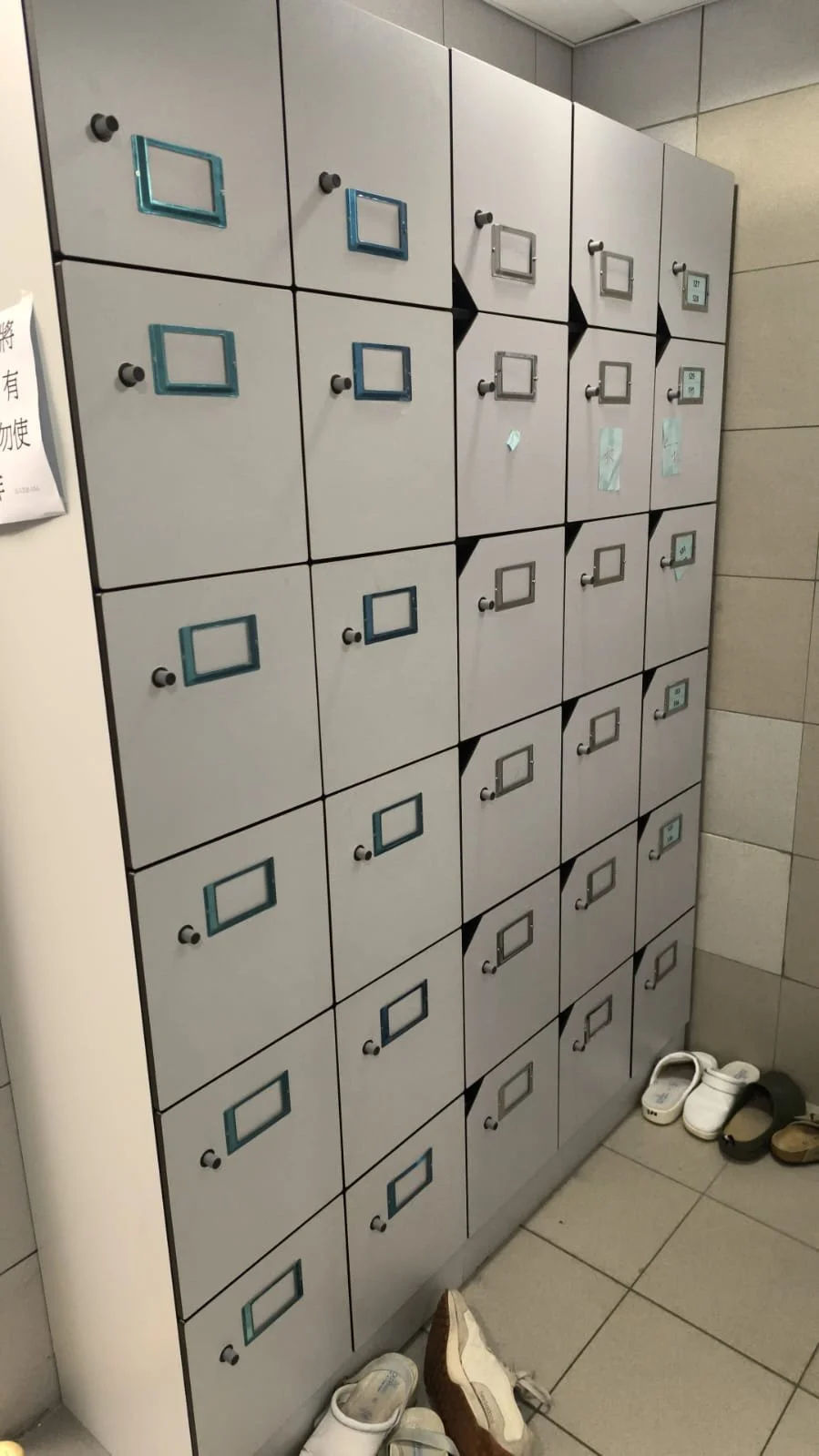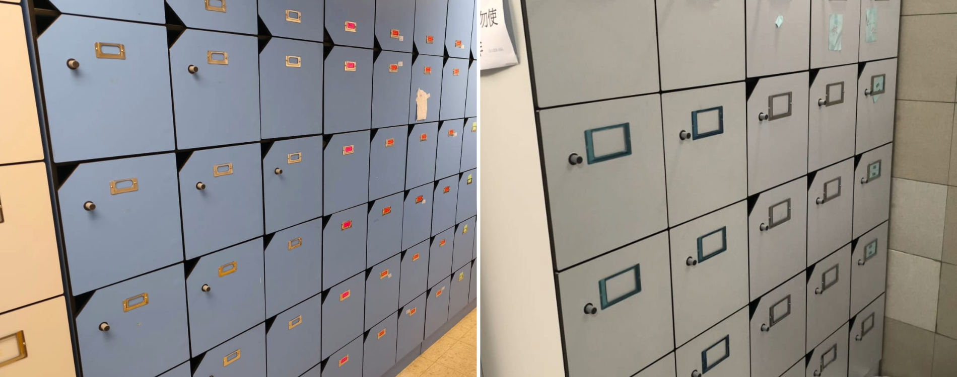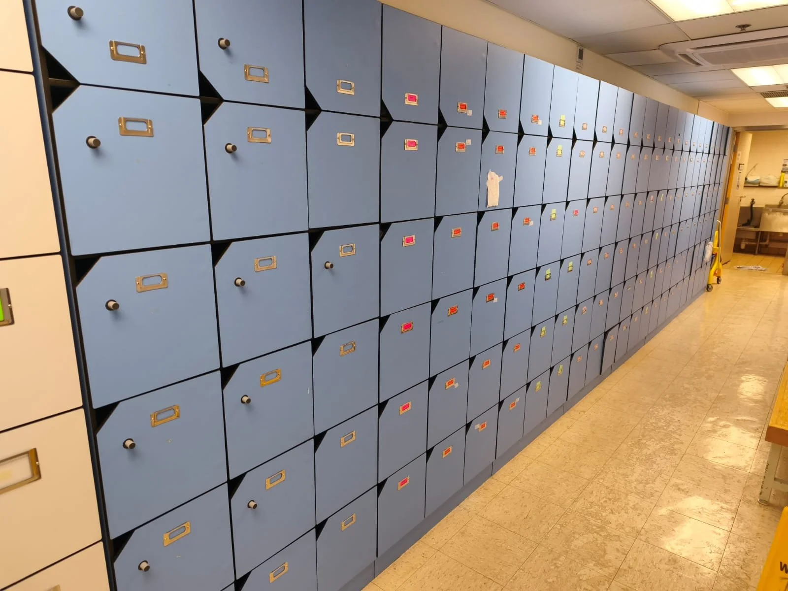 A retrofit battery locker installation at a hospital changing room. The proposed installation transforms all existing key lockers into keyless NFC battery-operated lockers.