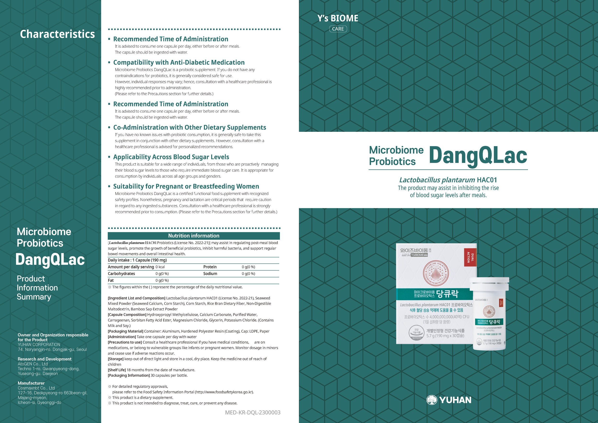 DangQLac is a probiotic supplement officially recognized by the Ministry of Food and Drug Safety (MFDS). It contains the Lactobacillus plantarum HAC01 strain that it may help stabilize post-meal increases in blood sugar and glycated hemoglobin (HbA1c) levels.